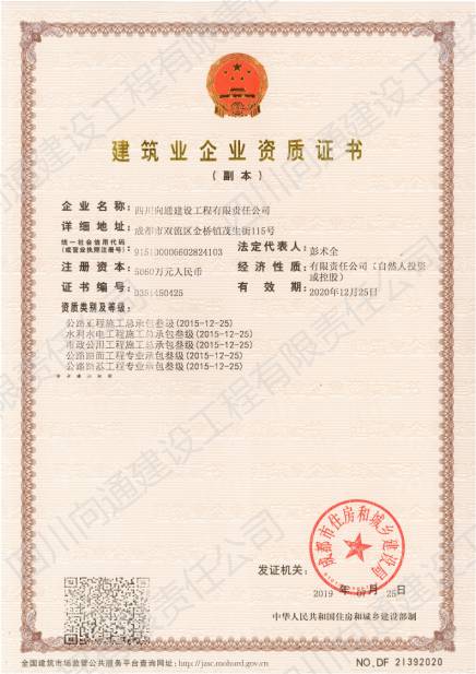 四川向通建設(shè)工程有限責(zé)任公司 四川向通建設(shè)工程有限責(zé)任公司成立于2007年,注冊(cè)資本金5060萬(wàn)元,是一家專(zhuān)業(yè)從事瀝青混合料生產(chǎn)、專(zhuān)業(yè)分包以及市政道路、公路、路基工程專(zhuān)業(yè)施工建設(shè)的企業(yè)。公司注冊(cè)地址及生產(chǎn)廠區(qū)位于成都市雙流區(qū)金橋鎮(zhèn)茂生街115號(hào),總占地面積約120畝;辦公地址位于雙流區(qū)海濱城海濱廣場(chǎng)7座11樓。公司生產(chǎn)廠區(qū)(雙流金橋)現(xiàn)有LB-5000型瀝青混合料拌合樓1套,每小時(shí)瀝青混合料生產(chǎn)量可達(dá)380噸。此外,根據(jù)項(xiàng)目需要,公司在多地建立4000型拌合站以服務(wù)施工(廣安齊福、達(dá)州、綿陽(yáng)等),每小時(shí)瀝青混合料生產(chǎn)量為320噸。各種國(guó)內(nèi)外道路施工機(jī)械:攤鋪機(jī)、壓路機(jī)、銑刨機(jī)、灑布車(chē)、封層車(chē)、吊車(chē)、拖車(chē)、等70余臺(tái),可滿(mǎn)足各種道路施工需求。公司近100輛保溫運(yùn)輸車(chē)輛均安設(shè)保溫板、加塞保溫棉、覆蓋棉絮和隔熱防水雨篷,有效減少瀝青混合料在運(yùn)輸過(guò)程中的溫度流失進(jìn)而保證瀝青路面的施工質(zhì)量。 公司目前擁有眾多優(yōu)秀的技術(shù)人才,成熟的市場(chǎng)渠道,良好的企業(yè)聲譽(yù)。現(xiàn)有各專(zhuān)業(yè)施工人才共計(jì)79人;5支專(zhuān)業(yè)的施工班組可根據(jù)現(xiàn)場(chǎng)的具體情況制定實(shí)施性施工方案。今后公司將竭誠(chéng)為各界客戶(hù)提供出色的產(chǎn)品和服務(wù)及具有競(jìng)爭(zhēng)性的價(jià)格和具有創(chuàng)新精神的高效解決方案。 公司曾經(jīng)榮獲:新津鄧雙段被新津縣政府評(píng)為“優(yōu)良工程”;雙流宗申大道被雙流縣政府評(píng)為“優(yōu)良工程”;成都后花園被成都市政府評(píng)為“重合同守信譽(yù)單位”;被三一重工評(píng)為“有遠(yuǎn)見(jiàn)單位”。并在2018年1月被中國(guó)五冶集團(tuán)評(píng)為“優(yōu)秀供方”;同年3月被四川交投評(píng)為2017年度“優(yōu)秀合作單位”的榮譽(yù)。榮譽(yù)的背后是我們公司所有員工堅(jiān)持不懈的努力。 作為現(xiàn)代化的企業(yè),公司將以技術(shù)為切入點(diǎn),以信譽(yù)為支撐點(diǎn),以市場(chǎng)為著眼點(diǎn),促進(jìn)管理創(chuàng)新和技術(shù)創(chuàng)新。因此我公司能在短時(shí)間內(nèi)迅速發(fā)展成為一家擁有各類(lèi)中大型施工機(jī)械設(shè)備的公司。在今后的工作中我們將借用現(xiàn)代電子信息溝通的便利為公司的發(fā)展助力,同時(shí)將秉承發(fā)揚(yáng)以往的團(tuán)結(jié)拼搏精神,推動(dòng)公司成為“快穩(wěn)型”發(fā)展的企業(yè)。 在未來(lái)的發(fā)展過(guò)程中,四川向通始終秉承“以質(zhì)量求生存,以信譽(yù)求發(fā)展”的企業(yè)管理理念,以“啟后為先創(chuàng)佳績(jī),爭(zhēng)做路建行業(yè)標(biāo)”的企業(yè)宗旨與建設(shè)單位建立合作關(guān)系,創(chuàng)造更加輝煌燦爛的明天! 四 川 向 通 建 設(shè)